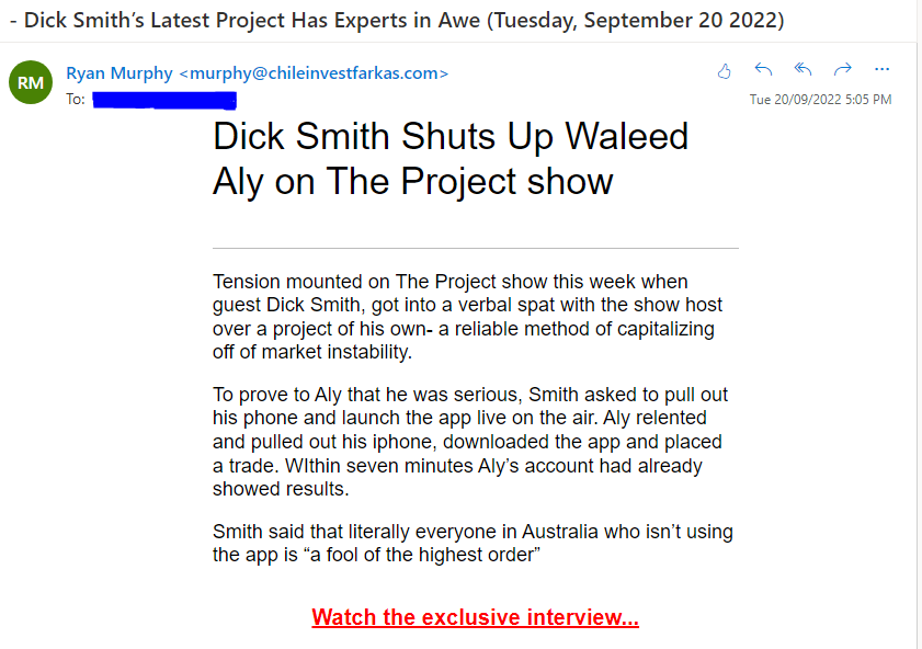 I just got the strangest spam email featuring Waleed and Dick Smith! I didn’t click the link but assume it’s an investment scam.