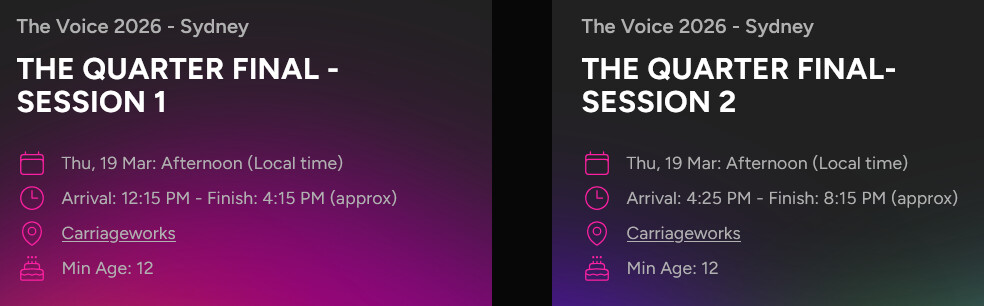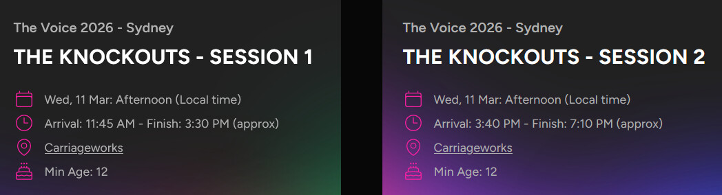 Blind auditions for the 2026 season take place at Carriageworks in Sydney in the last week of February.