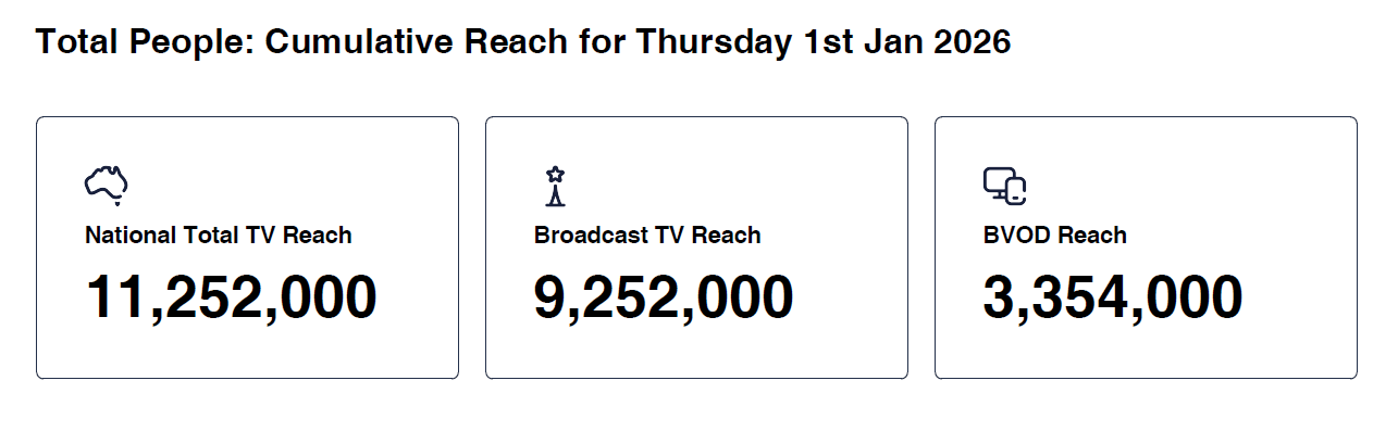 Data © OzTAM Pty Limited 2025. The Data may not be reproduced, published or communicated (electronically or in hard copy) in whole or in part, without the prior written consent of OzTAM.