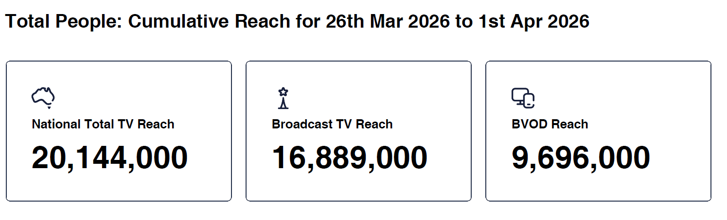 Data © OzTAM Pty Limited 2026. The Data may not be reproduced, published or communicated (electronically or in hard copy) in whole or in part, without the prior written consent of OzTAM.