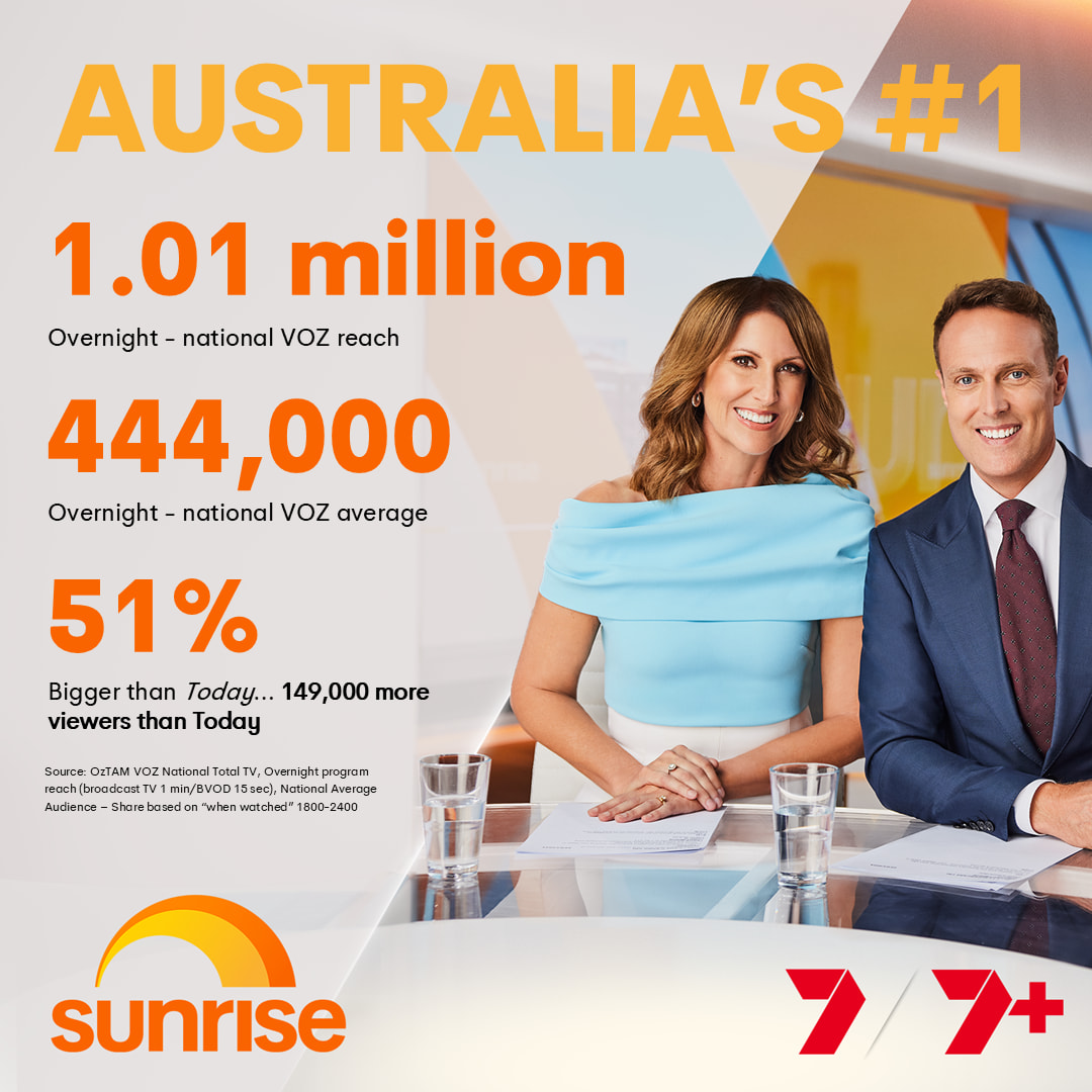 | 9 | SUNRISE | Seven | 303,000 | 131,000 | 33,000 |