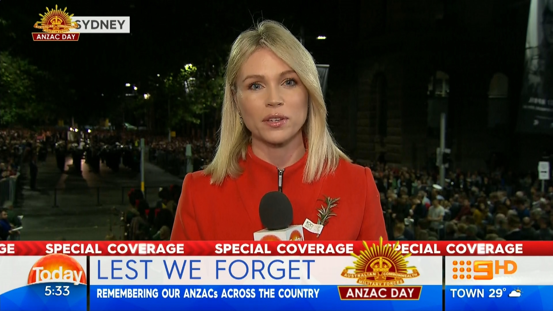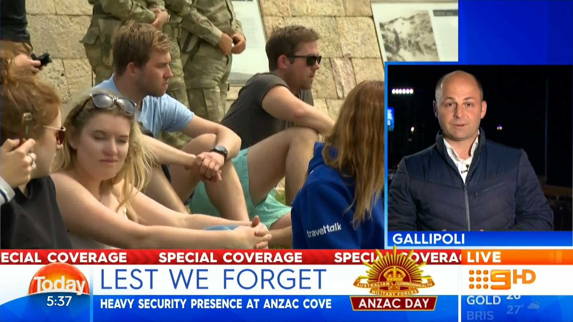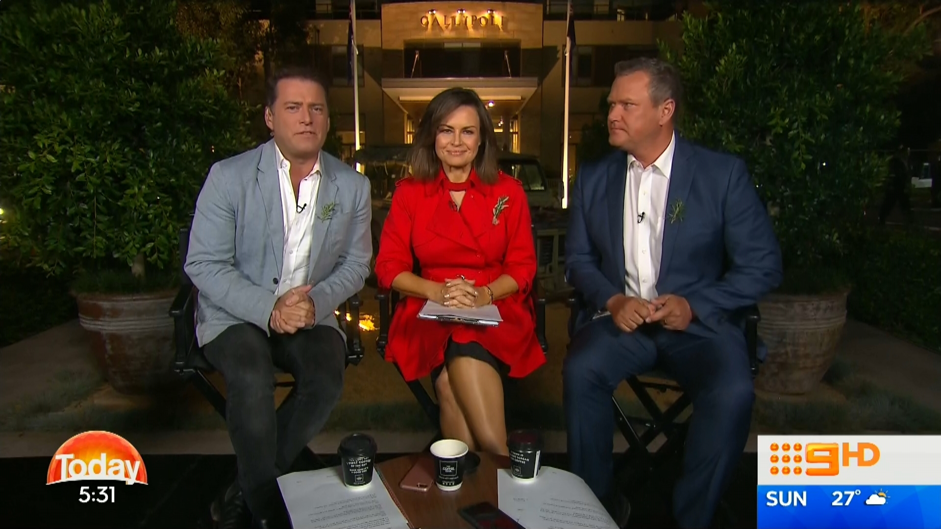 Karl & Lisa with Tim are broadcasting from Anzac Village in Narrabeen NSW on this mornings extended edition .Sylvia Jeffreys back in the studio reading news.