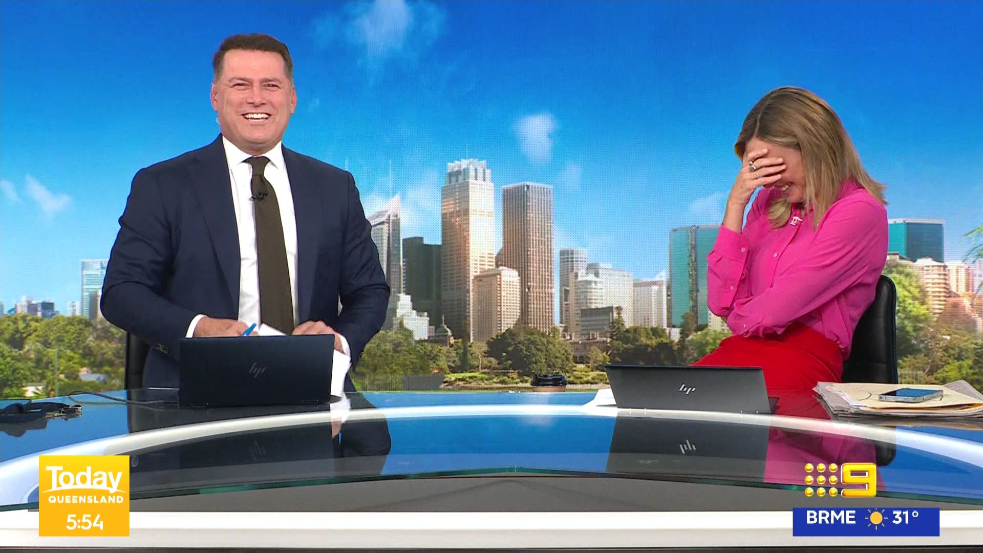 Probably the funniest thing I’ve ever seen on this show at 5.53am when Ally had a crack at Karl and Alex for watching the “Rams and the 69ers” yesterday instead of looking after their kids.