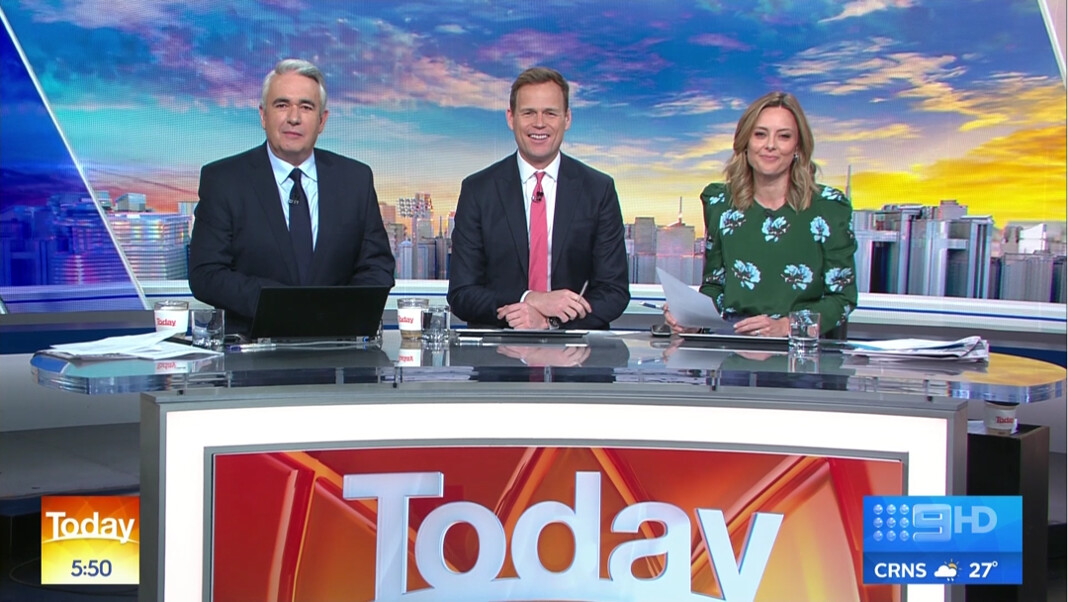 At the end of the 2018, Karl Stefanovic, Sylvia Jeffreys, Tim Gilbert, Natalia Cooper leave the show. Georgie Gardner, Deb Knight, Tom Steinfort, Tony Jones, Brooke Boney, Steve Jacobs (comes back) taking over from January 2019.