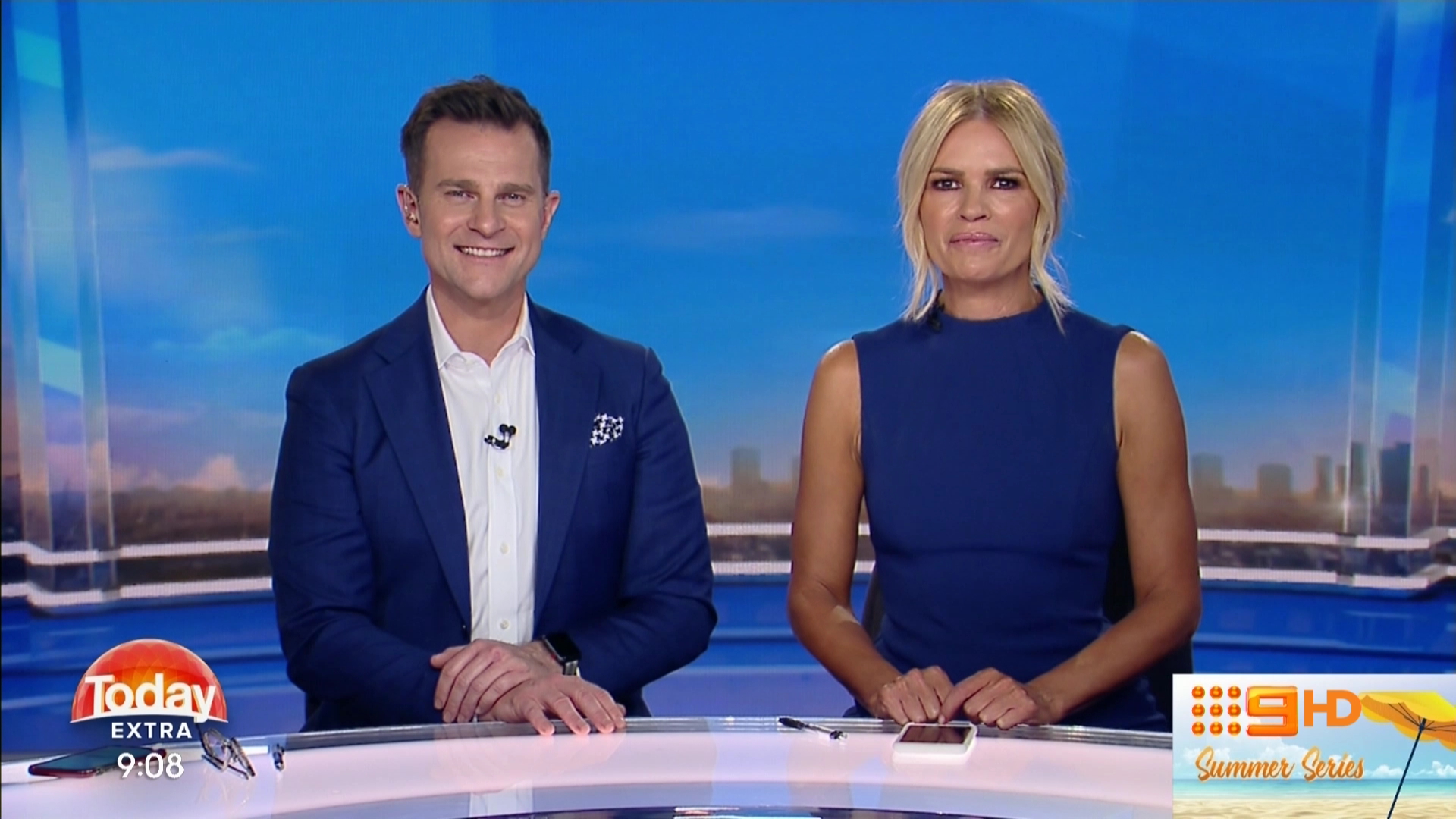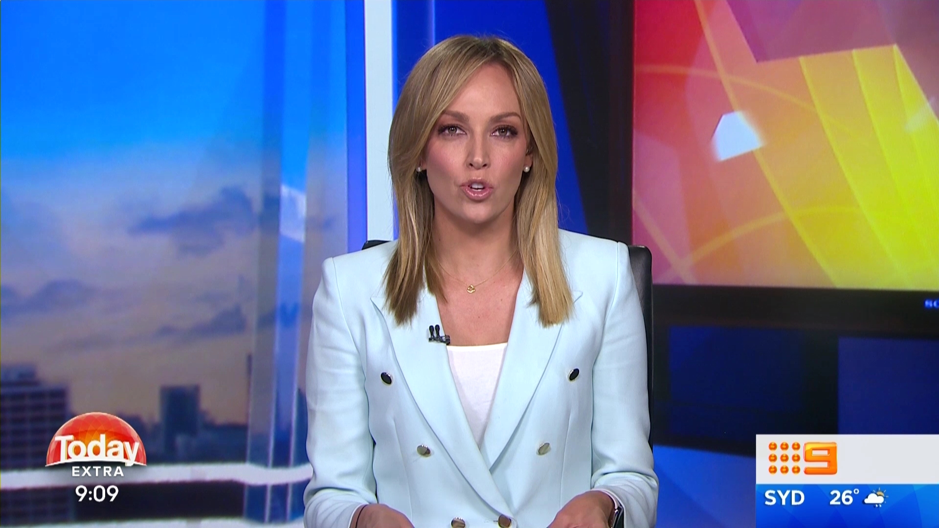 Speaking of Davina, she sat on the LHS of the desk for the 9am news because of the standing presentation of the first story.