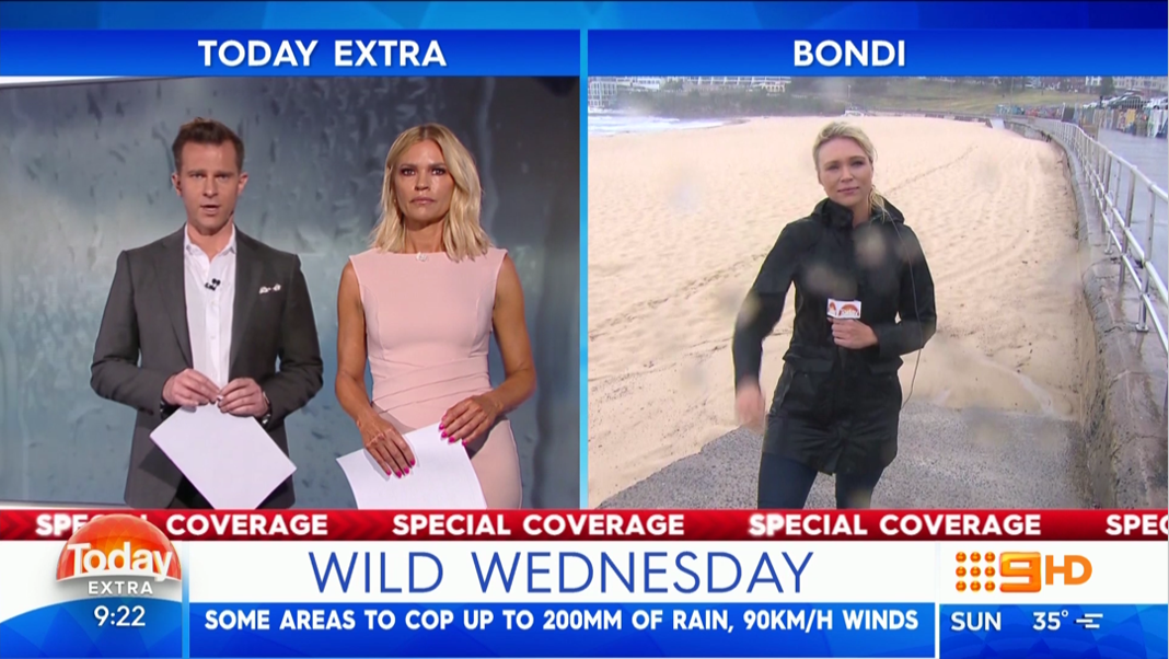 They started a little different today. Instead of having Davina Smith read the news, Sonia and David crossed to three reporters situated across NSW for coverage of the Sydney storm.