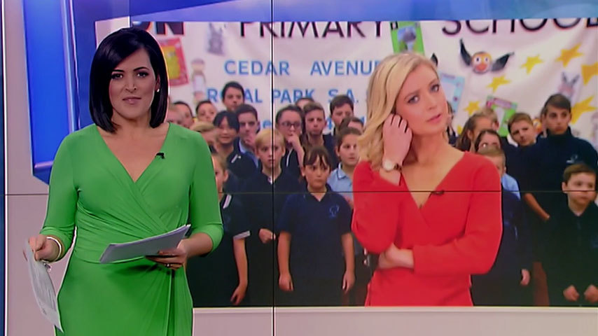 Rosanna in studio proceeded to begin reading the weather after Amelia’s microphone was muted part-way during her cross, all while both of them were visible on tv. Then to top it off a tomorrow preview began to play instead of showing the weather map. A think the following screenshot captures the mood and situation…