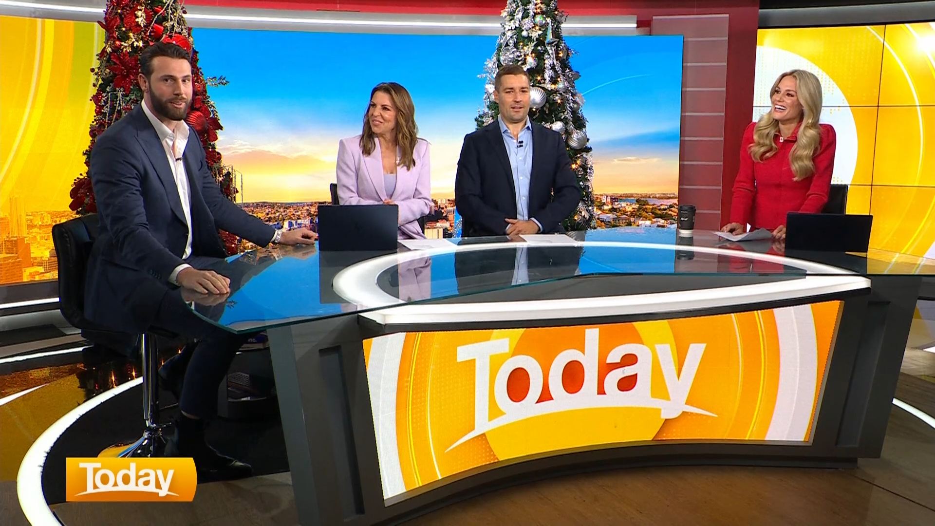 David and Sylvia hosting, Christine Ahern on news, Zac Bailey on sport, Taylor on weather