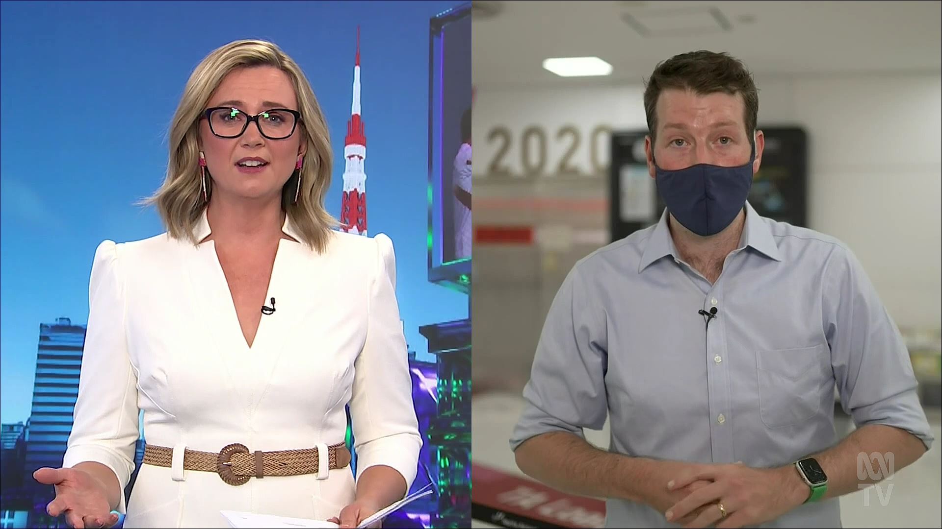 ABC reporting on the first positive case detected inside the athleteâs village.