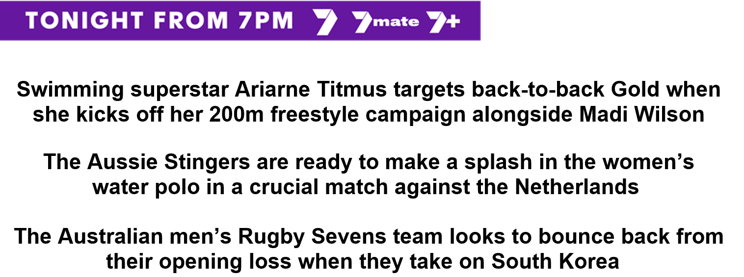 Good Thing 7News have Exclusive Footage from Tokyo while the Other TV Networks are Restricted to Photo Stills of the Winning Momemts.