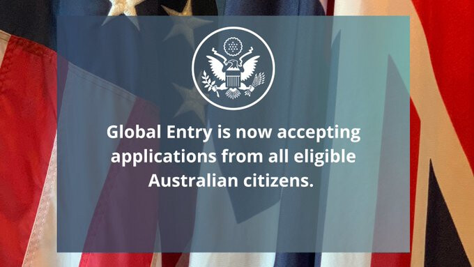 Aussies, your journey to the U.S. just became significantly smoother! Global Entry is now accepting applications from all eligible Australian citizens. This program allows pre-approved travelers to use automated kiosks upon arrival in the United States, leading to faster… pic.twitter.com/0Dx8fgdhsN