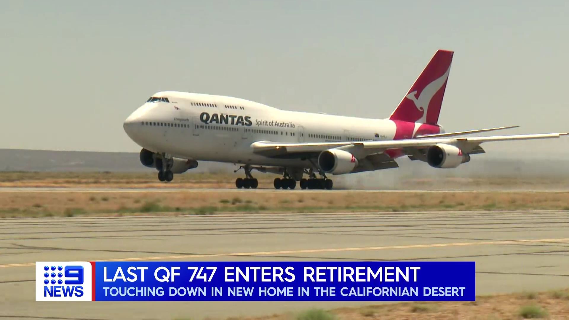 QANTASâs last 747 has arrived in the Mojave Desert for storage. Nine reported that the engines have been sold.