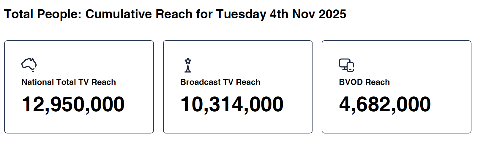 Overall, The Melbourne Cup coverage helped push the daily reach figure to close to 13 million, one of the highest for the year.