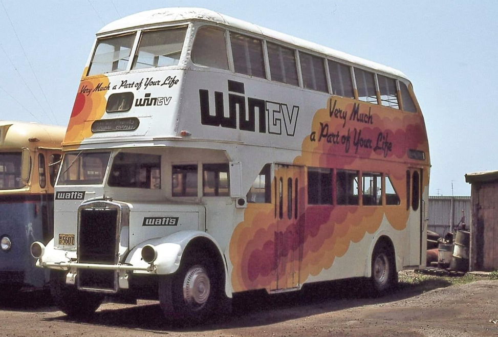 Not a media vehicle but I love the WIN TV livery on the old double decker passenger bus.