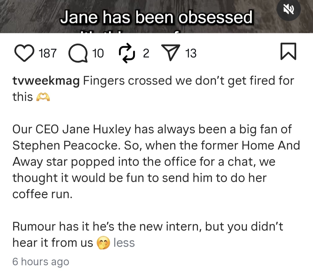 TV Week has provided an explanation on Instagram about why they are so obsessed with putting Stephen Peacocke on the cover. It seems theCEO of Are Media, Jane Huxley, is obsessed with him so they must be doing it to keep her happy (and keep their jobs