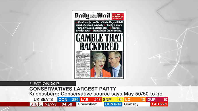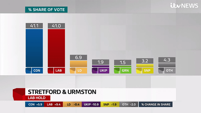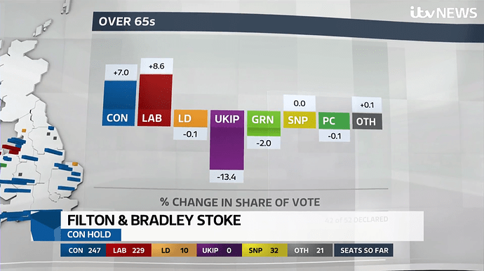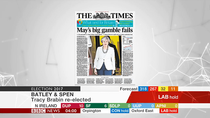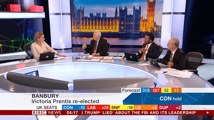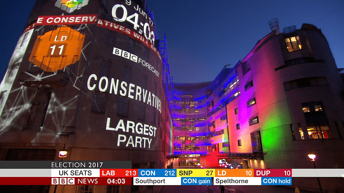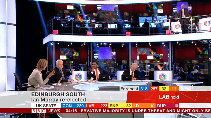 BBC coverage last night was crap compared with what it usually is. Dimbleby seemed irritable. This is definitely his last night of election coverage now, he was poor during the EU referendum too. ITV quicker to the results that mattered, excellent commentary from Osborne especially and Balls, and actually had insightful guest interviews before the BBC grabbed them.