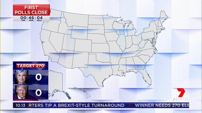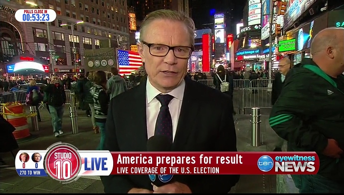 Sky News UK has an awesome set overlooking Times Square, and they’re using their election graphics from the UK General Election/Brexit Referendum as well. BBC looks staid and boring.