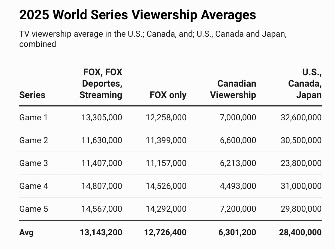 No suitable thread so have to settle here for World Series viewership numbers. The first truly global one in (recent?) memory.