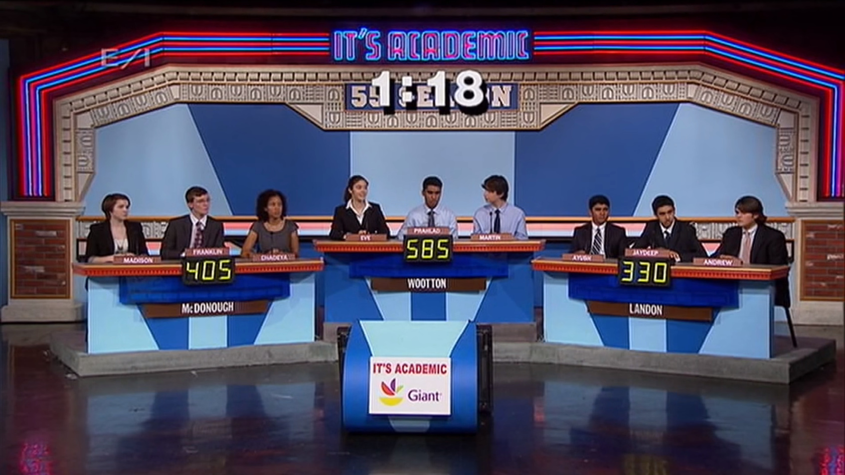 Something interesting I’ve just seen on Youtube. Local TV stations in the vicinity of the Washington DC area produce local versions of Its Academic - WJZ (CBS O&O) in Baltimore, Maryland, WVIR (NBC affiliate) in Charlottesville, Virginia and WRC (NBC O&O) in Washington DC produce their own local versions.