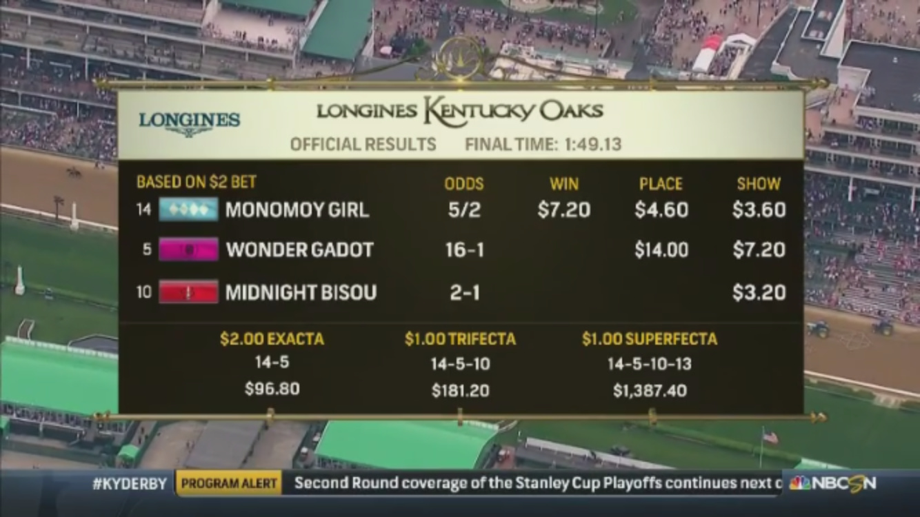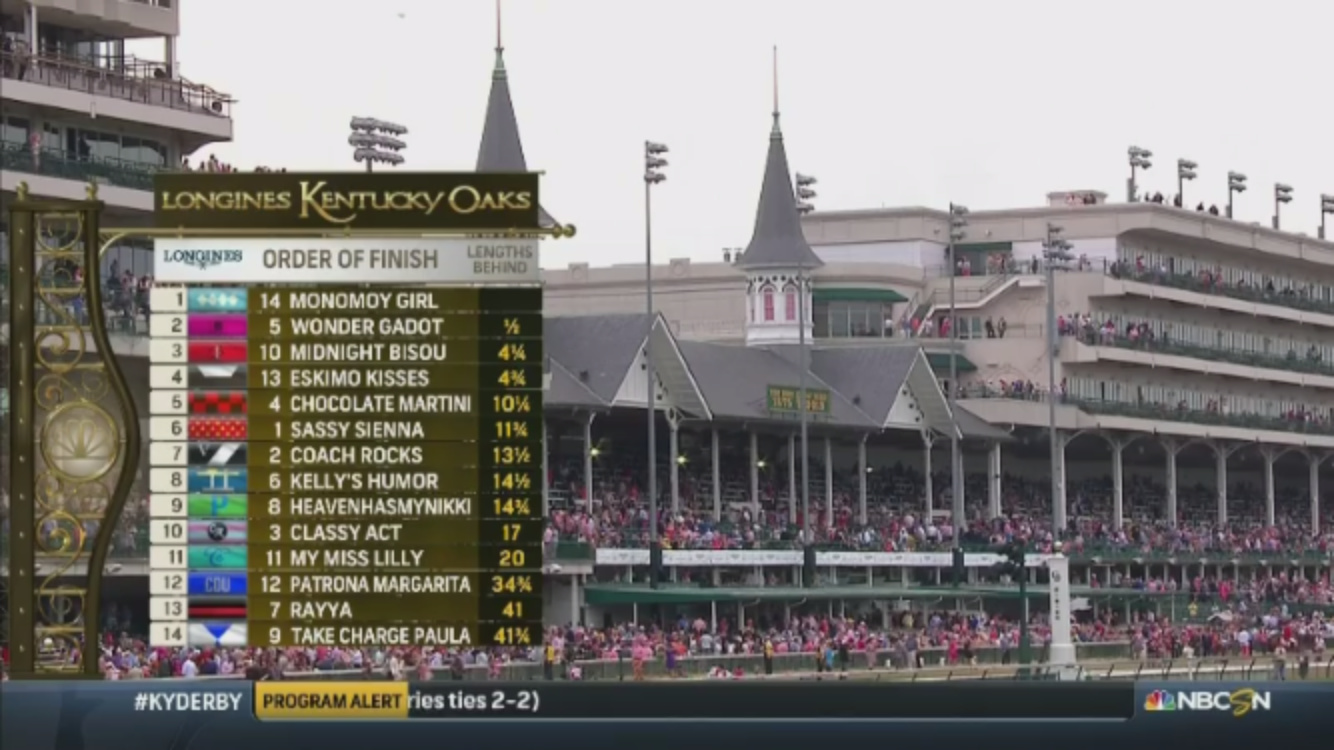 Horse racing on NBCSN. Today was Kentucky Oaks Day, the lead-up meeting for tomorrowâs Kentucky Derby.