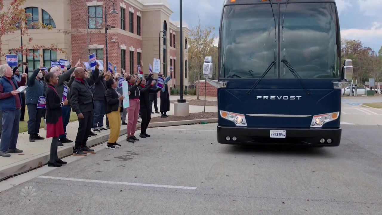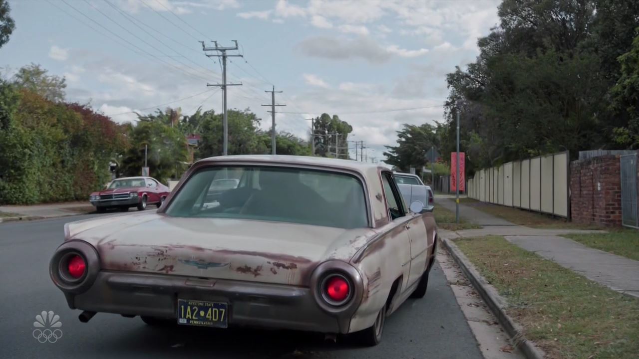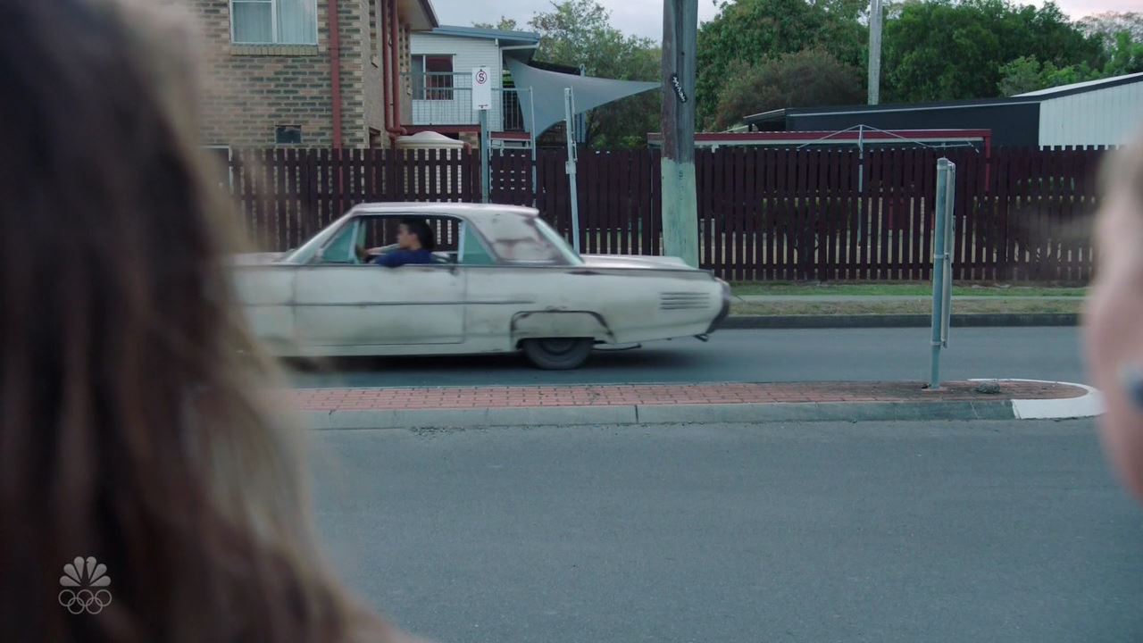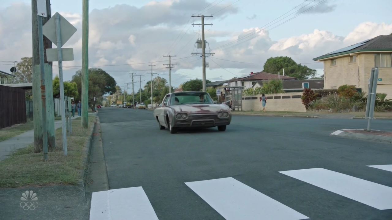 From Young Rock. Cars in foreground are on the right side of the road but in the background cars stopped at the traffic lights are on the left.