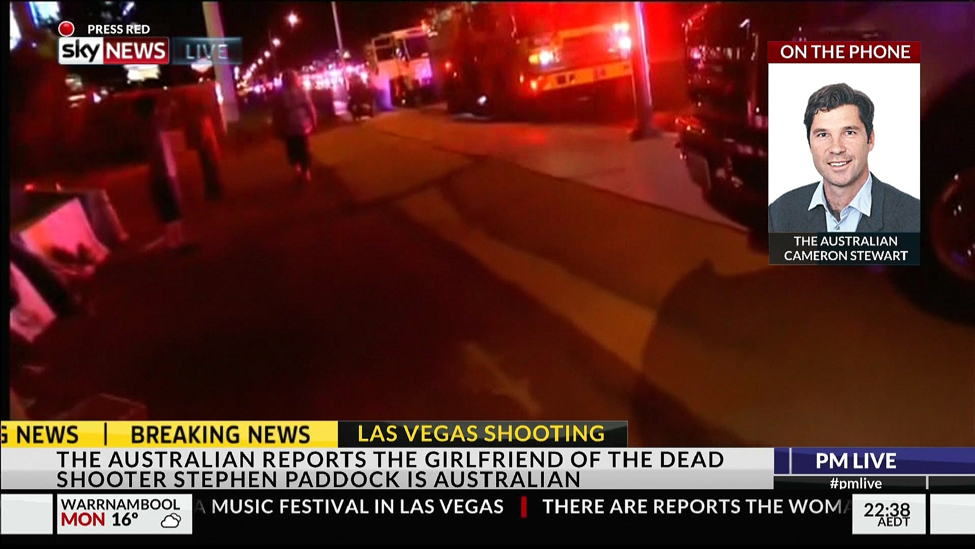 Seven News US correspondent Ashlee Mullany was staying at Mandalay Bay Hotel and was rudely woken up by the loud gun shots. She quickly evacuated and later did a live cross to the Sydney newsroom.