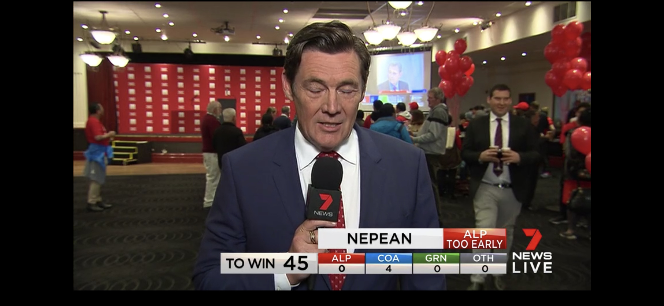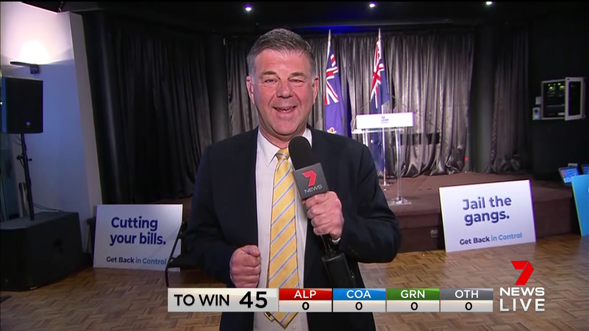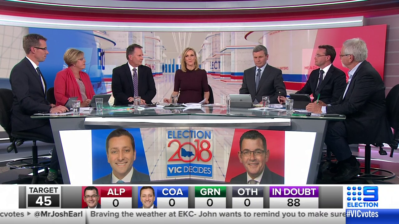 *Seven’s results graphics are WAY too big. I quite like their other graphics, but their utilisation of the set is so bland compared to Nine. As mentioned, the right side shot is too dark.