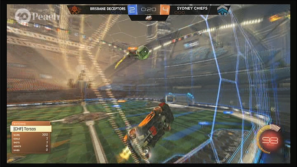 10 Peach w/m during Gfinity program. Placement avoids covering the scores. For some reason the entire program has a black border.