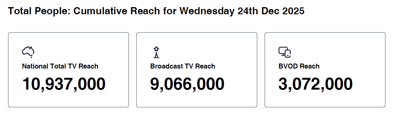 Data © OzTAM Pty Limited 2025. The Data may not be reproduced, published or communicated (electronically or in hard copy) in whole or in part, without the prior written consent of OzTAM.