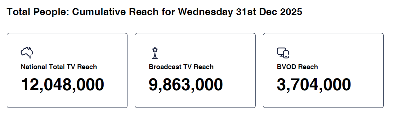 Data © OzTAM Pty Limited 2025. The Data may not be reproduced, published or communicated (electronically or in hard copy) in whole or in part, without the prior written consent of OzTAM.