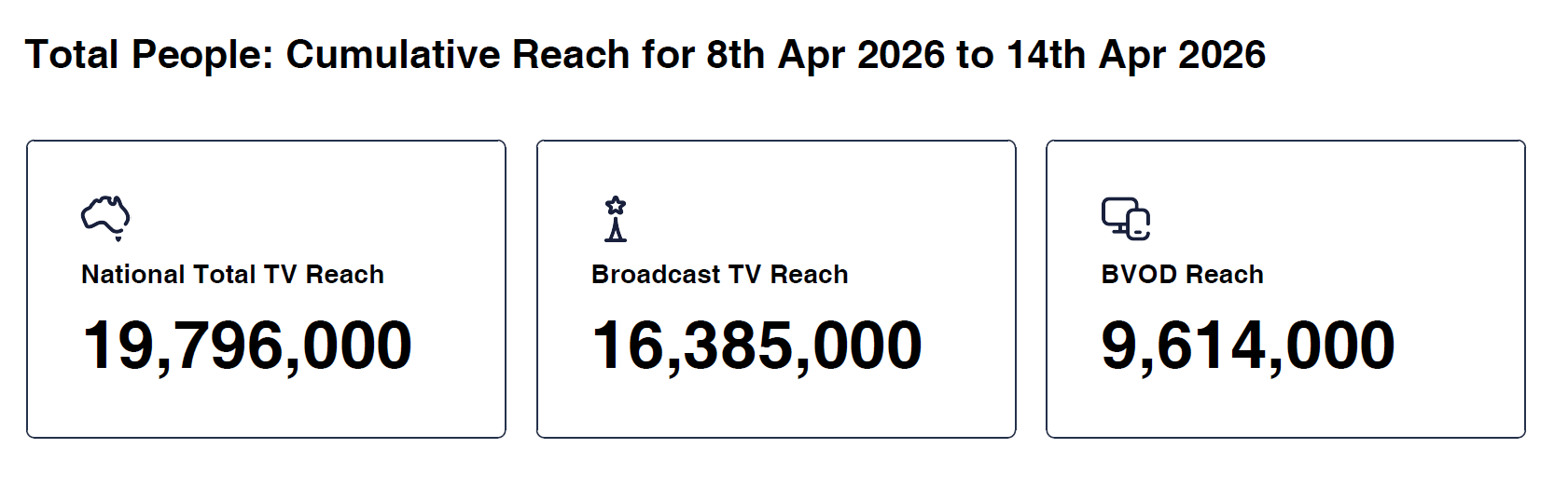 Data © OzTAM Pty Limited 2026. The Data may not be reproduced, published or communicated (electronically or in hard copy) in whole or in part, without the prior written consent of OzTAM.