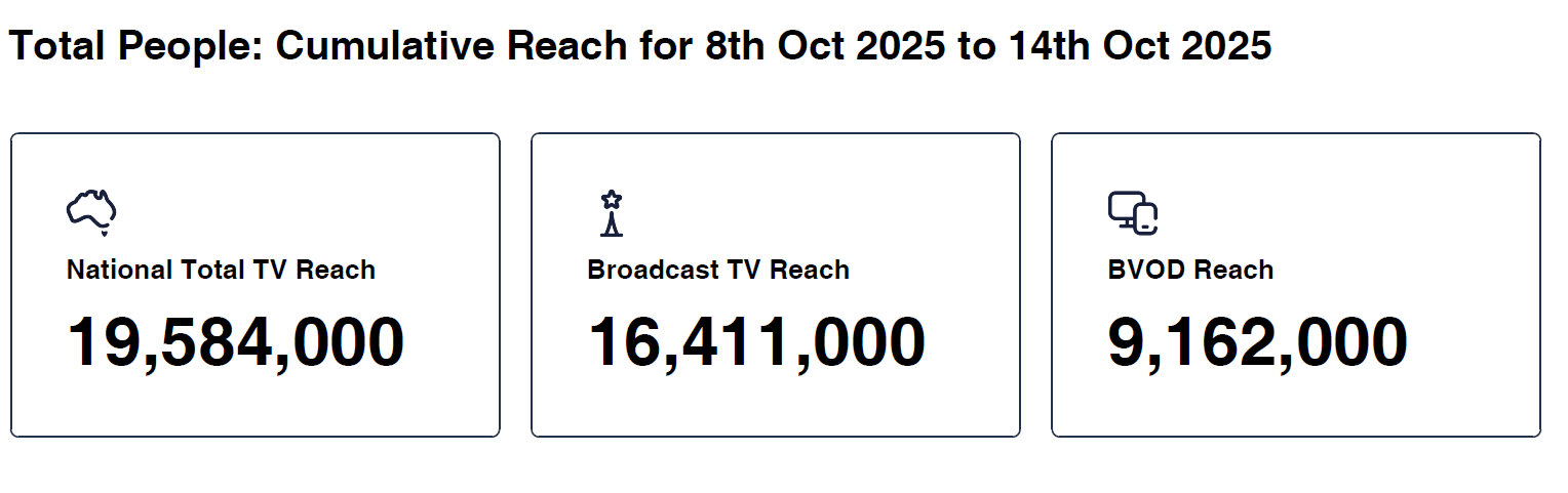Data © OzTAM Pty Limited 2025. The Data may not be reproduced, published or communicated (electronically or in hard copy) in whole or in part, without the prior written consent of OzTAM.