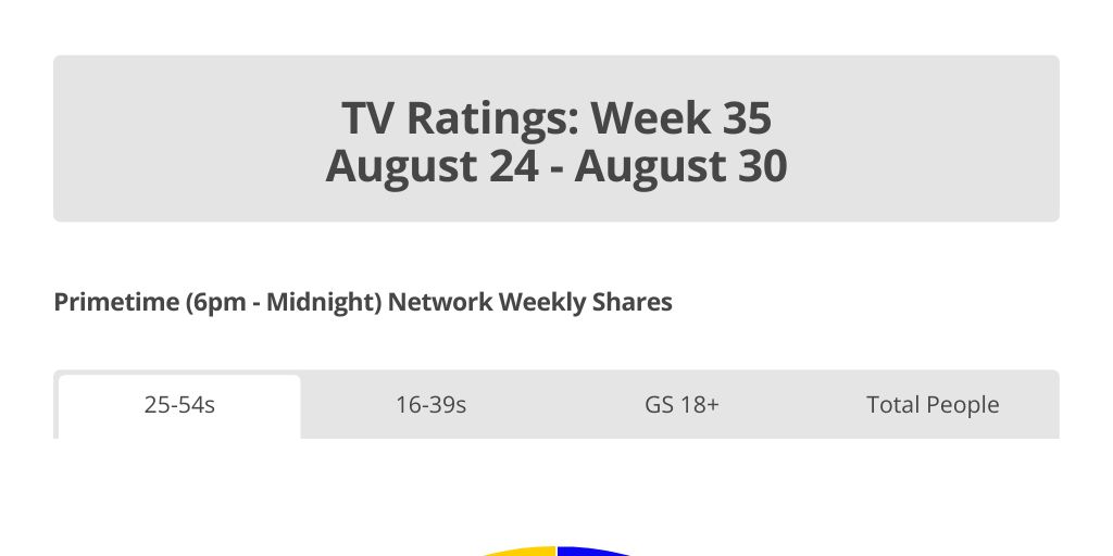 AFL: Legends Game for Prostate Cancer : #1 program in all people, 25 to 54s and 16 to 39s. National reach 2.3 million, national audience 879,000. Highest rated AFL broadcast this season.