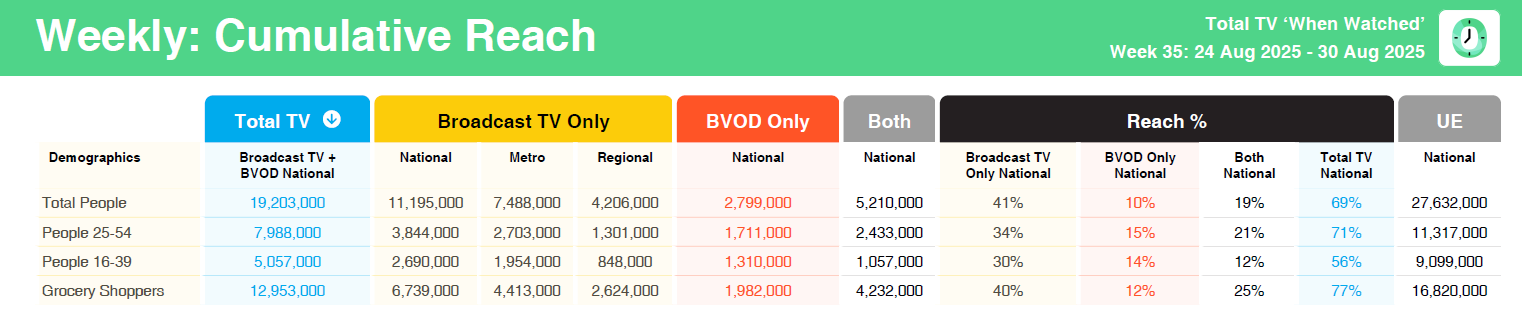 7NEWS Friday: #1 program in total people and grocery shoppers. National reach 2.09 million, national audience 1.34 million.