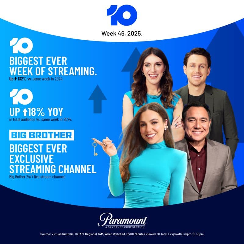 7plus: #1 in streaming. 42% commercial share, up from 41.4% in the same week in 2024.
