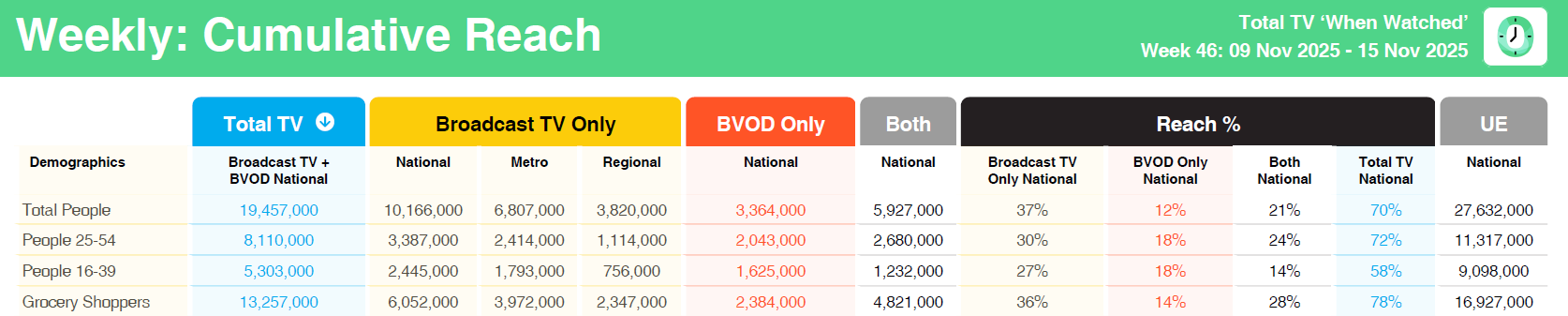 7NEWS Sunday: #1 program in all people and grocery shoppers. National reach 2.16 million, national audience 1.34 million.